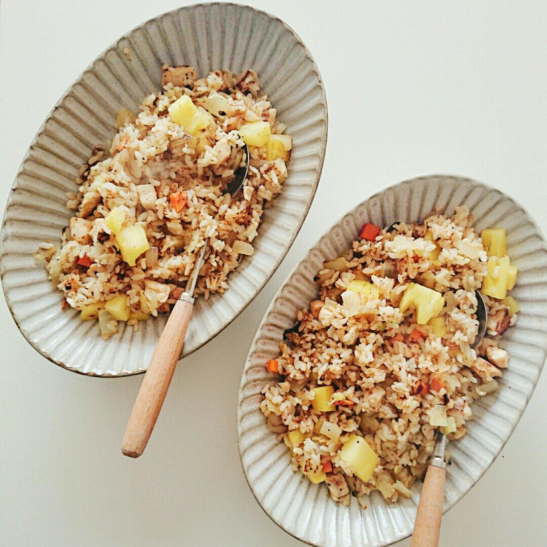 3/30午餐,春天气味的奶香菠萝鸡肉炒饭。🍍🍚