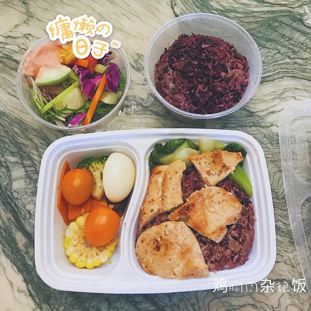 午餐来一份健康的鸡胸肉杂粮饭。