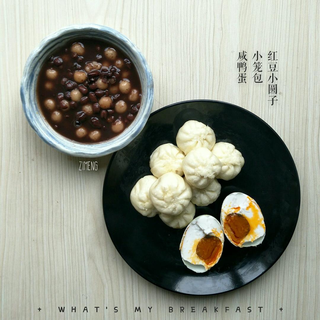 红豆小圆子+小笼包+咸鸭蛋