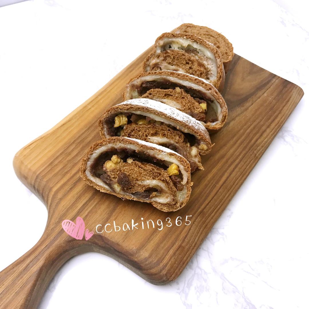 红豆麻糬可可软欧包
