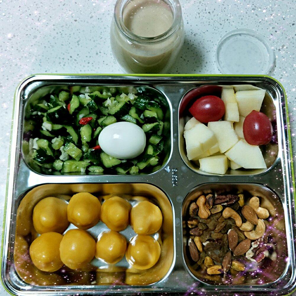 陶莉娜 做过 早餐•2017年4月10日 #早餐•2017年4月10日#窝窝头(玉米面 糯米面 牛奶 奶粉)拌菜(黄瓜 蒜 枸杞)豆浆(黄豆 黑豆 荞麦 绿豆 芸豆 花豆 莲子)坚果果干(腰果 杏仁 碧根果 开心果 葡萄干)香瓜 小番茄鸡蛋 2017-04-10