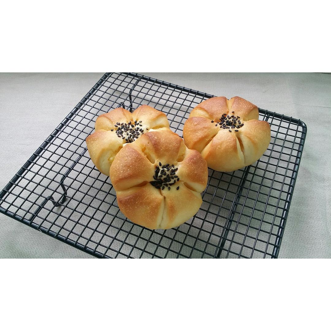°孽 做过 花朵面包(快手版本) #晚餐•2017年4月17日#糊涂的把烫种做完之后就丢到边上晾凉,直到面团完全揉好了准备一发的时候才看到,最后还是把烫种加进去继续揉了,本来还想说做这个方子可以节约点时候,结果还是忘记,完全一发结束再包馅整形二发😂最后要进烤箱的时候发现也晚的了,才慢很多拍的察觉没给自己省到时间啊。 2017-04-17