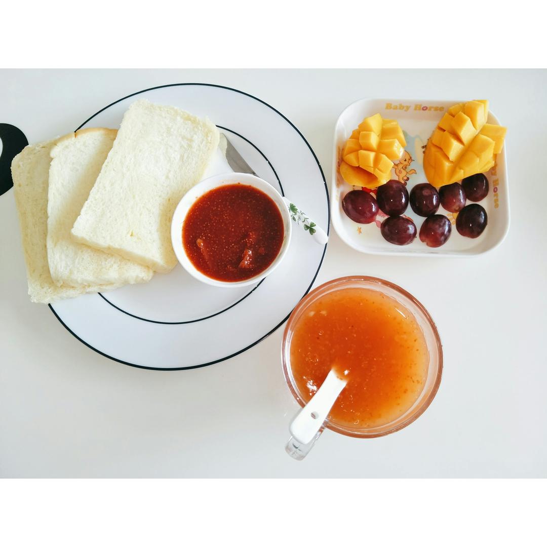 兮夵 做过 早餐马拉松顺利收官:因为坚持,所以更好! #早餐•2017年4月23日##萱萱麻麻 下厨房~早餐记##一日三餐🍴🍛#马拉松早餐,开跑了!第一天:超熟鲜奶吐司+覆盆子果酱!覆盆子果酱葛根糊!(奇葩吃法!)芒果+红提!还有早上头发凌乱吃早餐的萱小宝。😂😂 2017-04-23