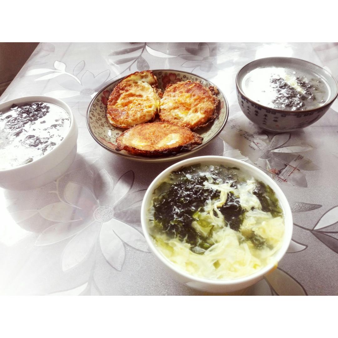 煎鸡蛋,紫菜汤,蛋挞还在锅里ღ( ´・ᴗ・` )