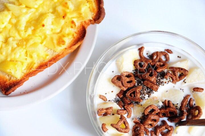 大星大米随便你 做过 早餐马拉松顺利收官:因为坚持,所以更好! D6.菠萝芝士吐司 牛奶苹果奇亚籽Ab那个c 泡另种咯嘣咯嘣~ #早餐•2017年4月28日# #围裙X跑马记# #隔三差五的姿势# 2017-04-28