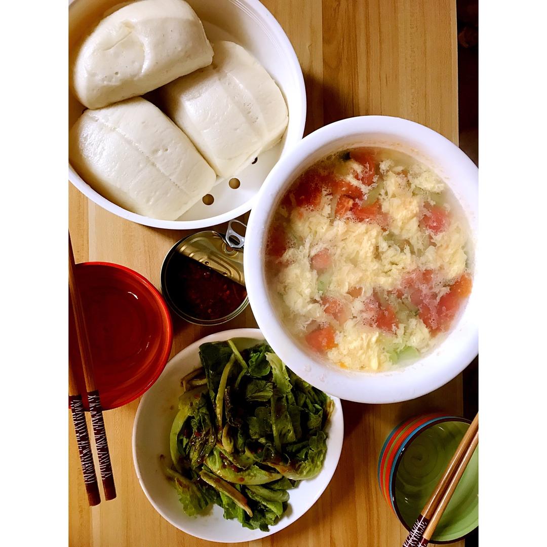 好Shan妹儿 做过 早餐•2017年4月29日 最喜欢早晨,因为可以很满足的吃着自己做的早餐。可以吃的很多可以吃的很饱。无油番茄青瓜蛋花汤 黄豆酱凉拌生菜 酱虾宝蘸白馒头(厦门旅游特产,公司老板娘送的,味道真的好) #早餐•2017年4月29日##减肥营养早餐# 2017-04-29