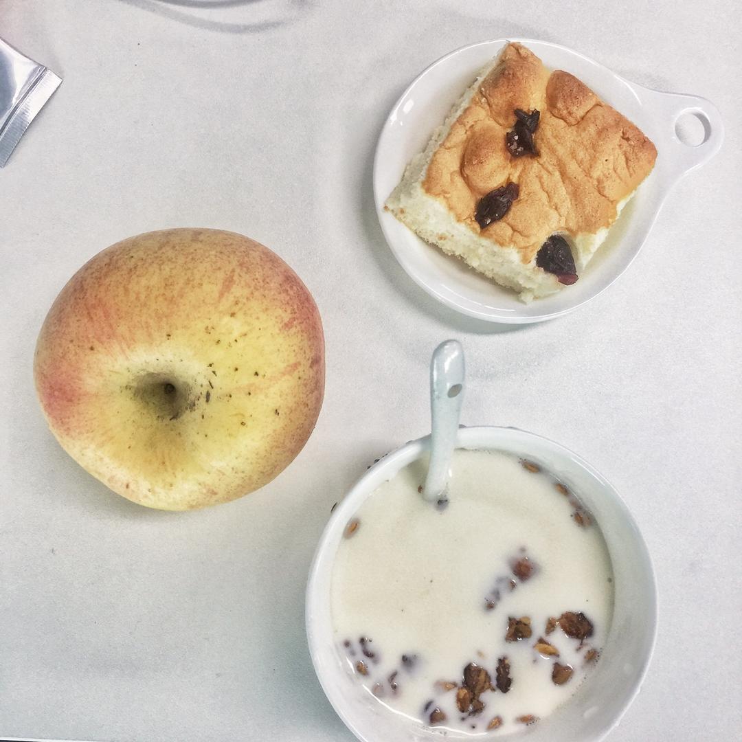 下雨☔️了,上班路上真是糟心,还好有早餐点亮心情:蔓越莓天使蛋糕&牛奶泡格兰诺拉脆麦片