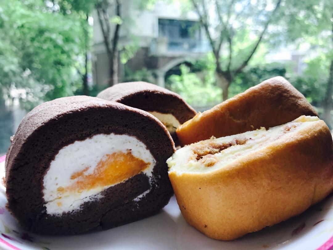 结合了这个方子和小四卷做的,收到了好评无数,小伙伴竟然连着三天拿它当早餐吃😎记得第一次做完发现蛋糕胚怎么辣么薄,好像被剥削过了,瘦的只剩一层皮。于是反省,是消泡太厉害?蛋白打发不到位?还是什么别的原因。。好学如我,之后翻看了无数蛋糕卷的配方和前人的经验,发现可能是家里的蛋太小的缘故,于是按照一个蛋60g左右的量进行了调整,竟然真的做出了美美的原味和巧克力卷,原来不是我操作上的问题✌️如此肥厚细腻的卷才应该是我新社会下幸福生活的代表啊! #早餐•2017年5月3日#