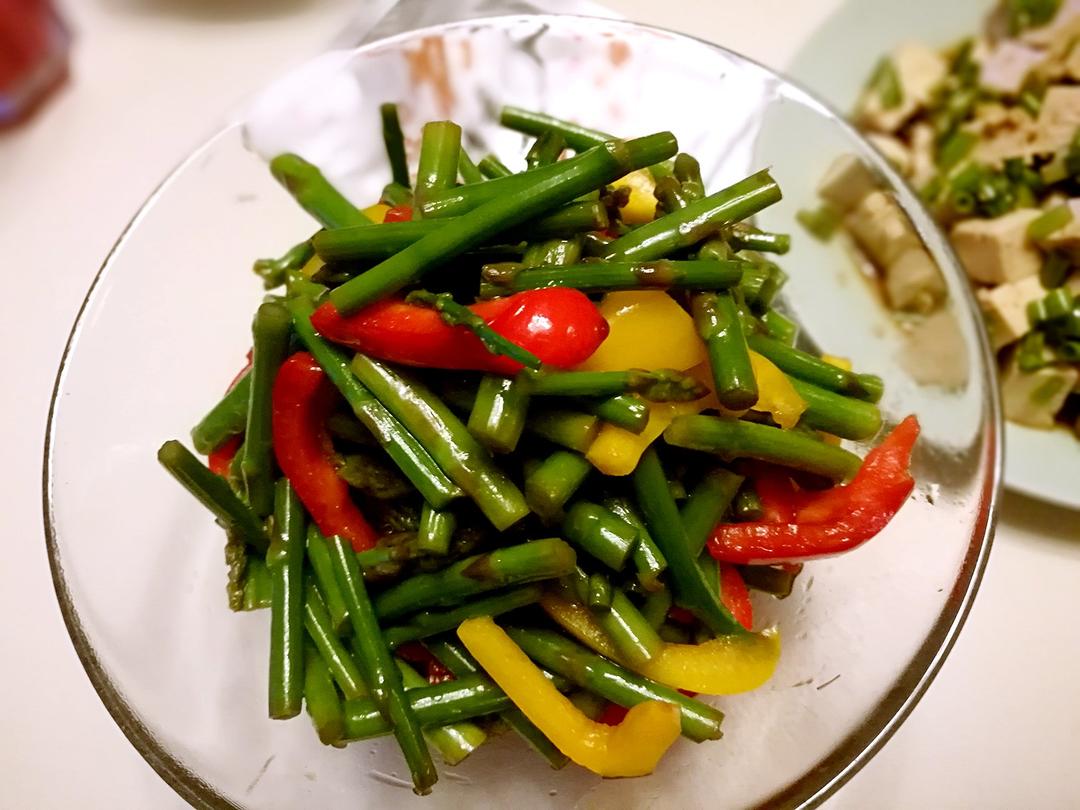 凉拌芦笋,小葱拌豆腐,红烧武昌鱼,黄瓜丝拌拉皮