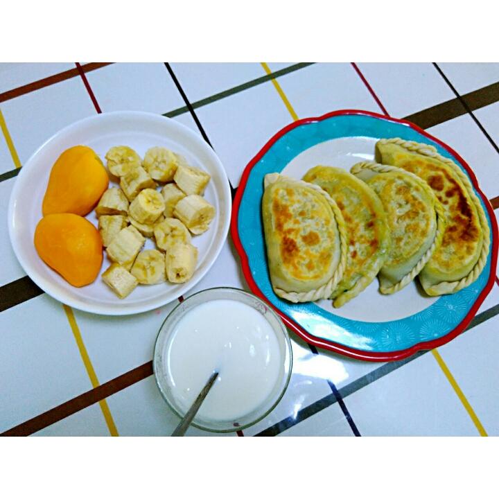 第十五天之韭菜盒子、酸奶、水果