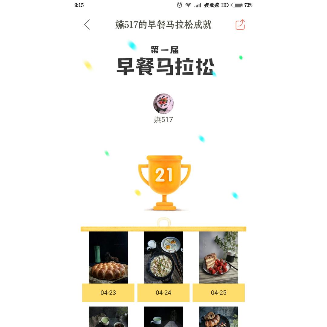 孇飛嬿 做过 晚餐•2017年5月13日 #晚餐•2017年5月13日##早餐马拉松:因为坚持,所以更好##我眼中的美好生活!# 很喜欢这样的活动,激励自己的同时也能体会坚持的不容易!加油,继续努力吧!😄 2017-05-13