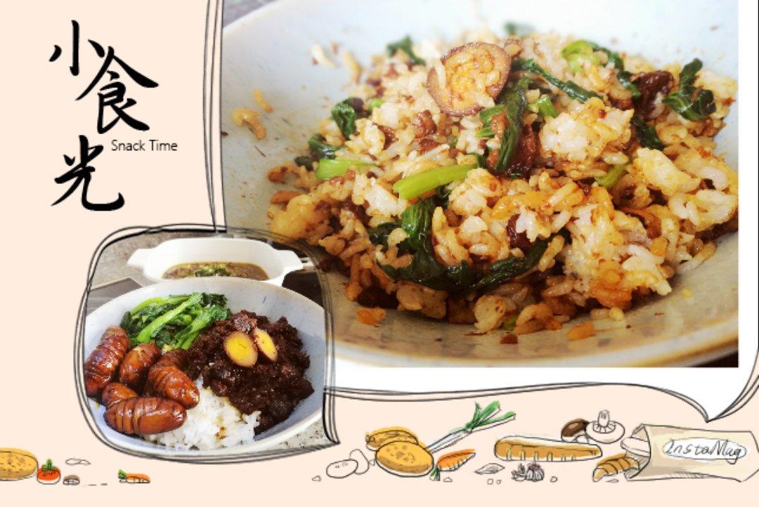 台湾卤肉饭,鱼子烧茄子,大枣小米粥,紫薯包,咸鸭蛋。