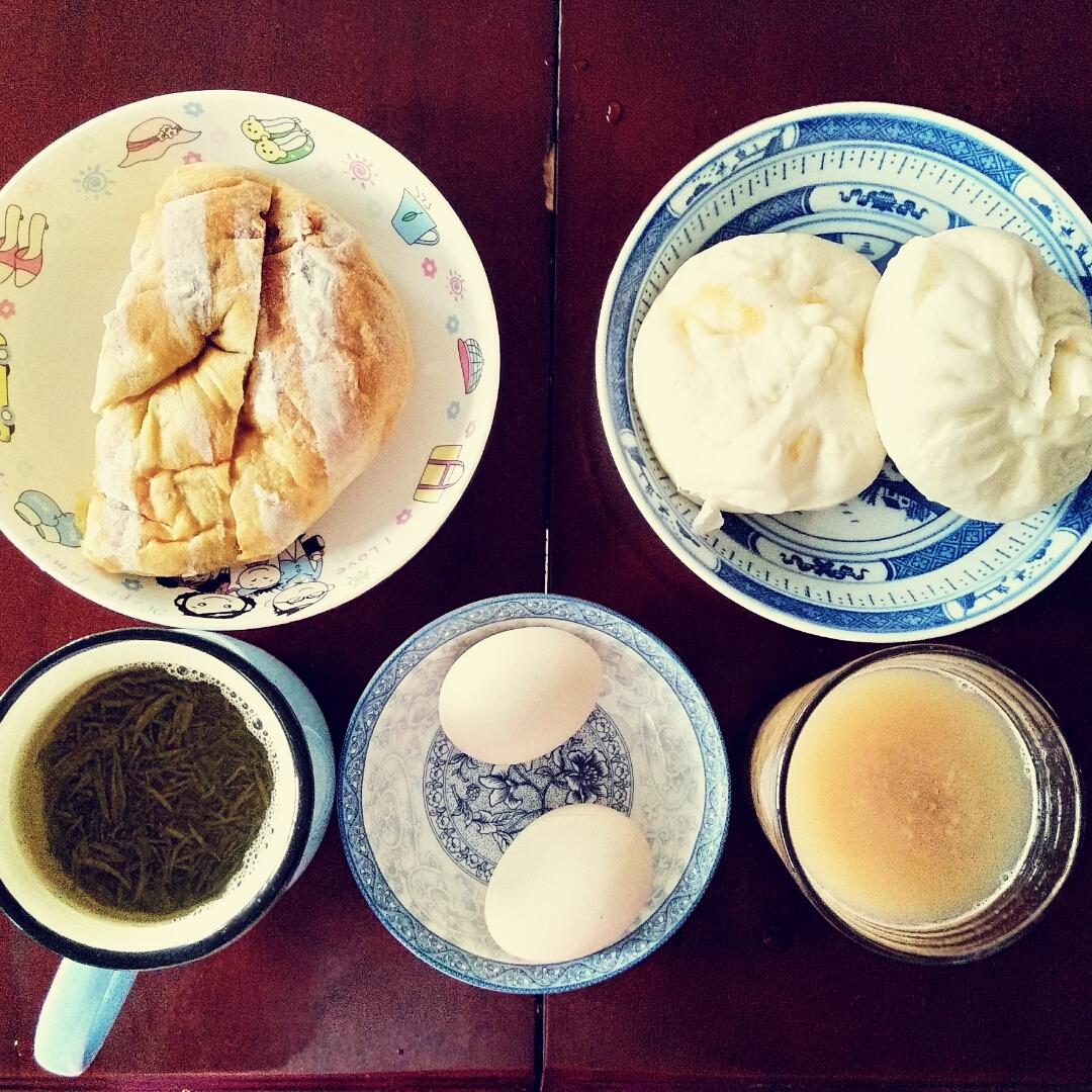 丰腴娘 做过 早餐•2017年5月16日 #早餐•2017年5月16日#第二十四天。六时半才起床。一冰箱的吃的,所以,我决定,只是热一热,煮一煮。本来想做的可乐鸡翅,放回冰冻;本来的笋瓜拌面,也暂缓。趁着新鲜,我把这些都吃掉。南瓜奶酪面包+酱肉包+绿豆粥+绿茶,我爱吃早餐! 2017-05-16