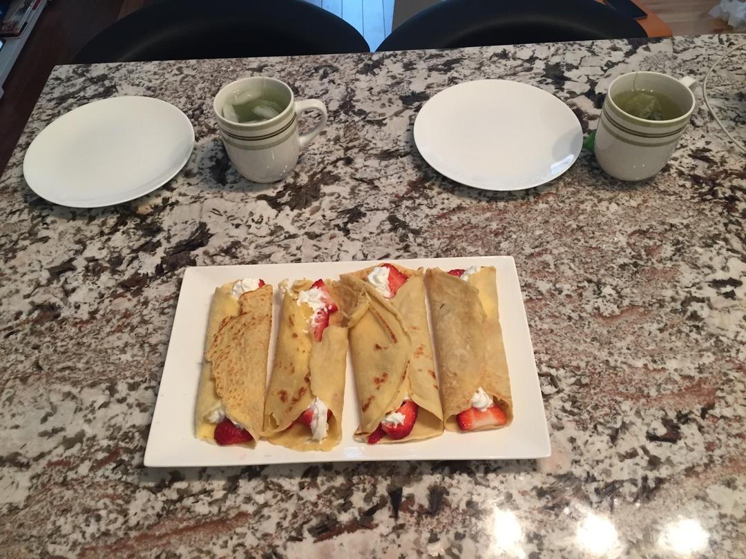 可丽饼配冰抹茶~我的最爱哦✌️