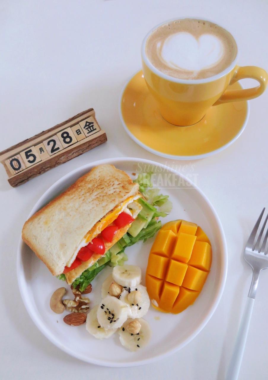 肉桂G 做过 早餐•2017年5月28日 假期第一天,要享受一下慵懒的状态。今天的早餐,不对。是早午餐:黄瓜鸡蛋三明治、芒果和香蕉。咖啡拉花也变得“慵懒随意”了…😌🙄顺便祝大家端午假期愉快! #早餐•2017年5月28日##早午餐# 2017-05-28