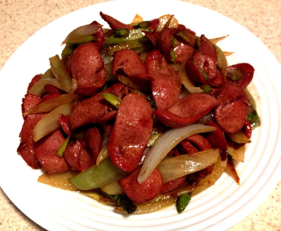 洋葱芦笋炒香肠(快,简单)