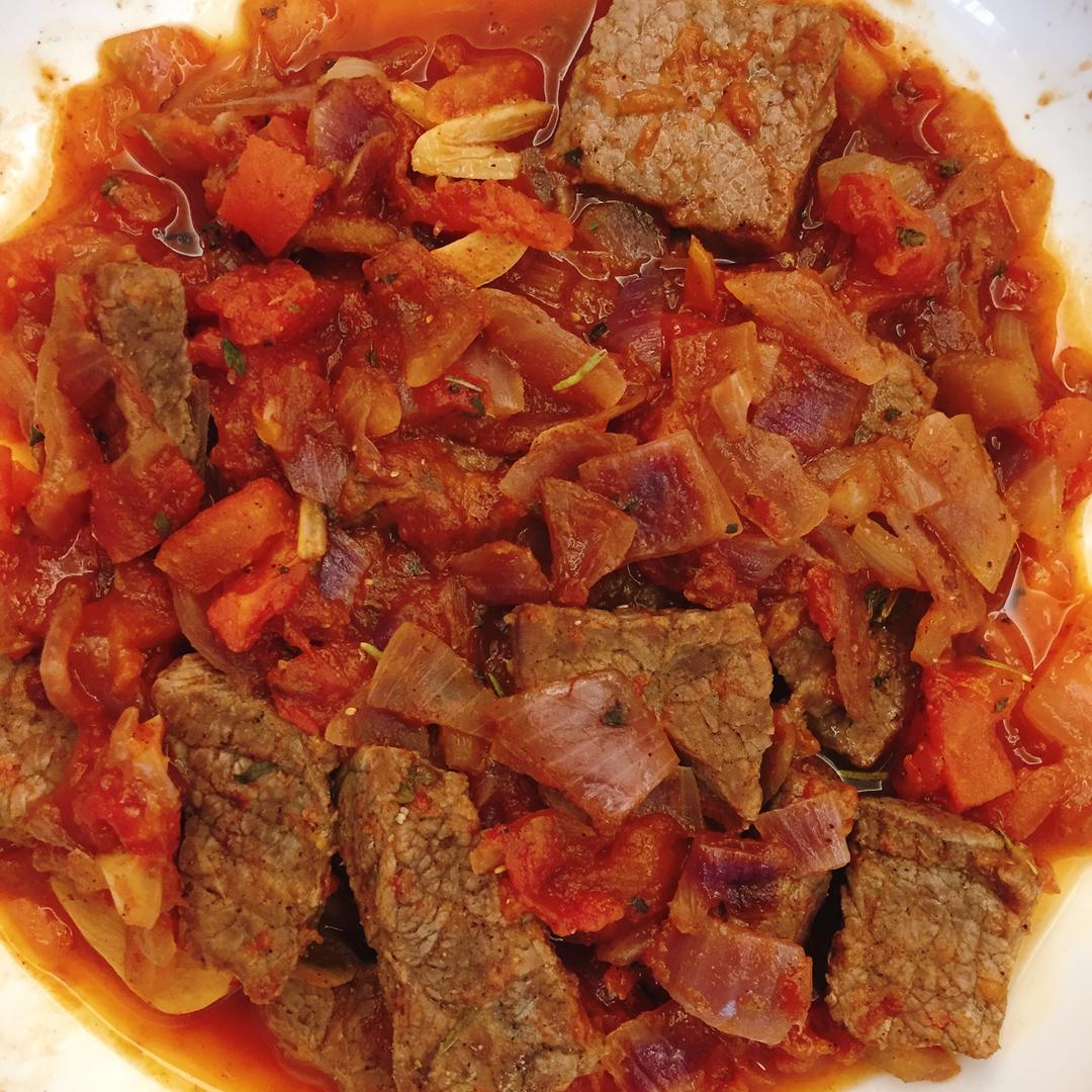 想把牛肉处理掉就换成牛肉了!我的天哪!也太好吃了吧!特别好吃的番茄酱的味道!白胡椒有点小辣配上今晚喝的丝瓜汤,爽!
