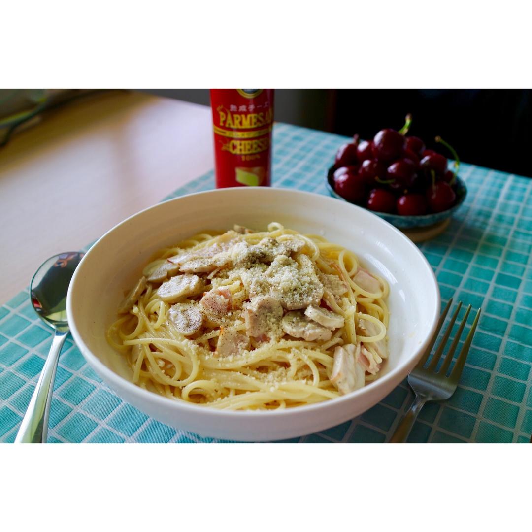 白蘑菇奶油培根意面