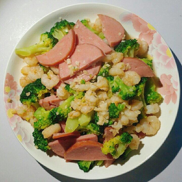 虾仁炒西兰花