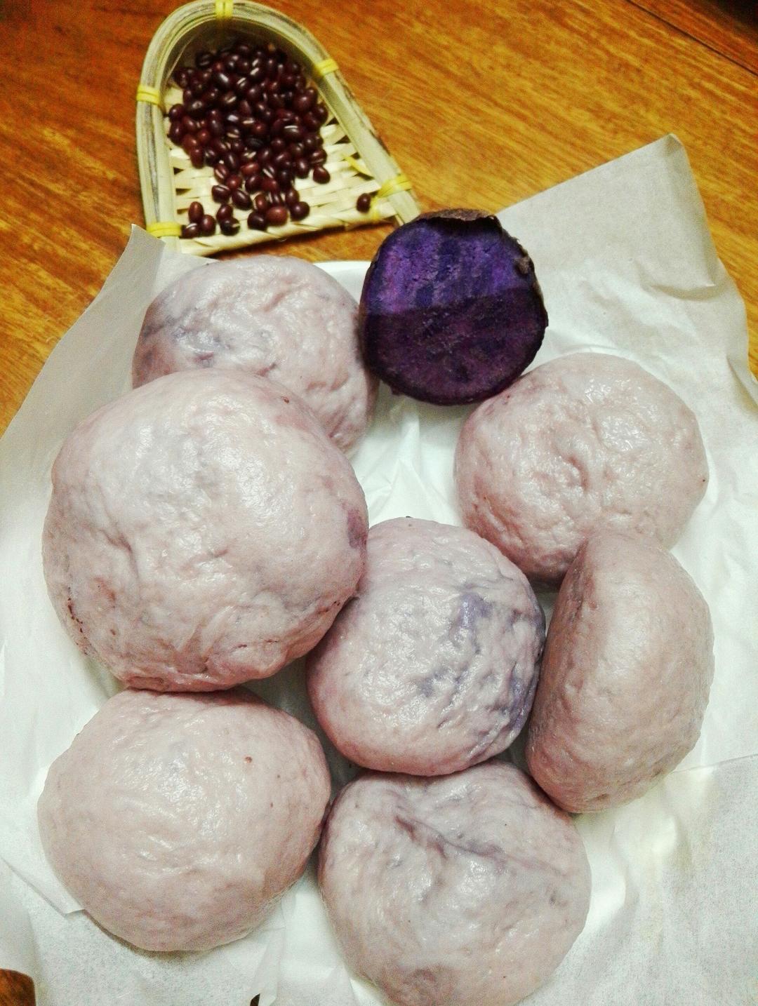 包的馅儿用的是椰子油和红豆,紫薯混合打成的泥~