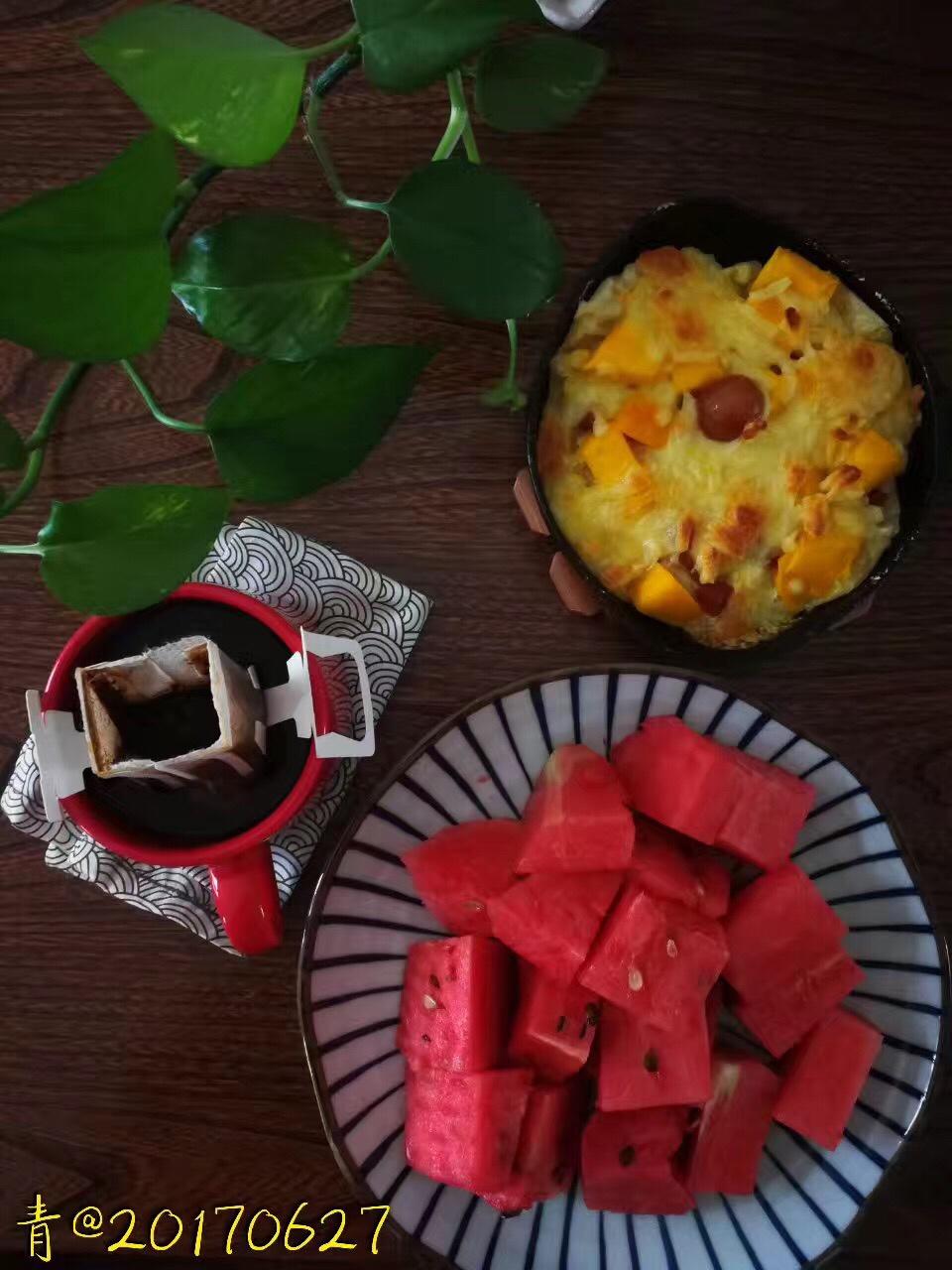 刘大青 做过 早餐•2017年6月27日 忽然就想吃披萨了~玉米芒果披萨你吃过吗?🙈🙈今天没逛公园,摩拜消化消化食儿吧~院子里那一抹阳光也是令人陶醉的~然后,昨晚~窜上楼顶的刘大咪,回家陪我喝酒去可好?😂😂 #早餐•2017年6月27日# 2017-06-27