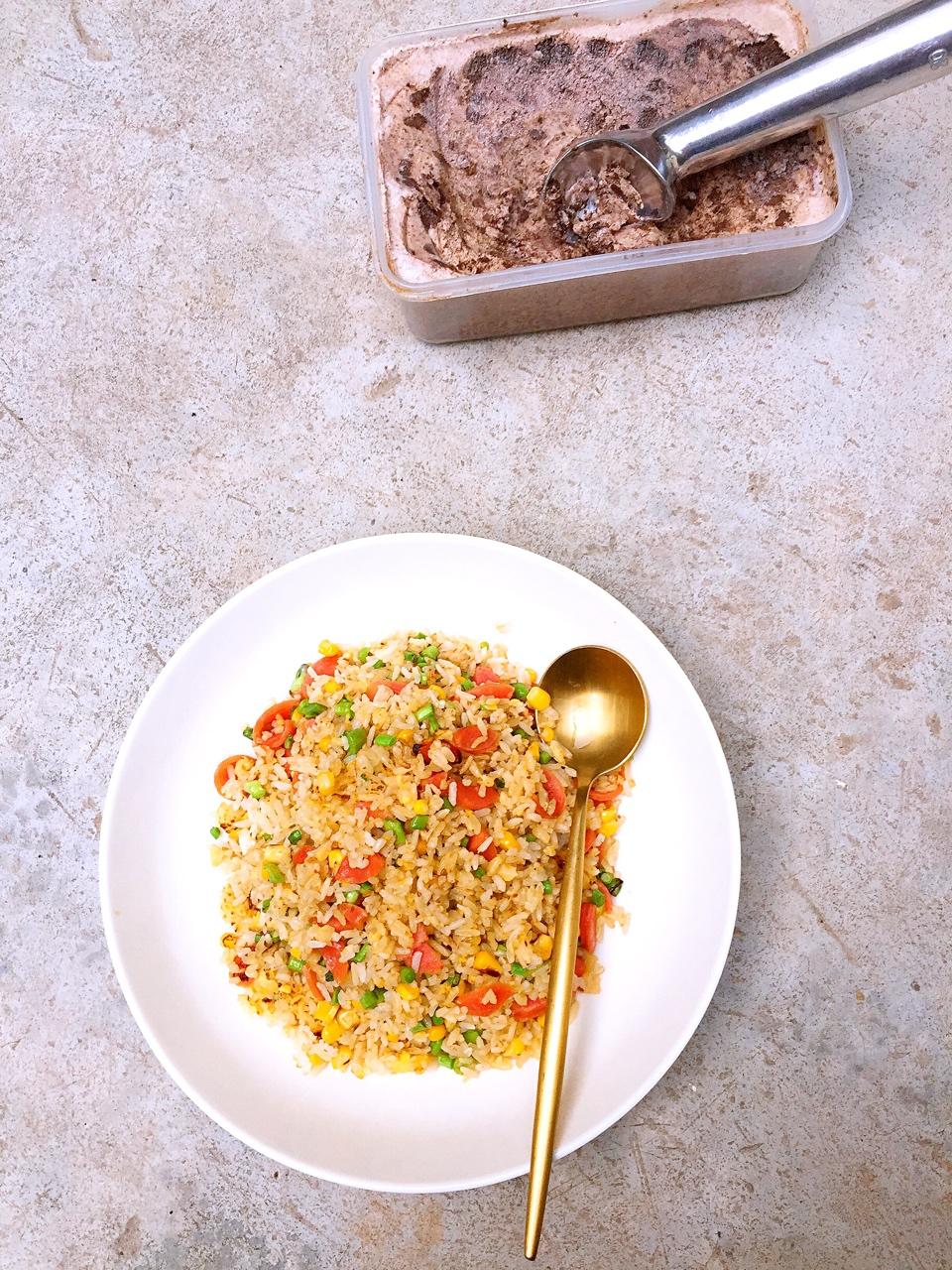 方糖candy 做过 晚餐•2017年6月28日 黄金炒饭(蛋液少了,金色不明显)冰激凌冻时间久了挖不起来 #晚餐•2017年6月28日##2017☻爱就是在一起吃很多很多的饭##ʚ🙈ɞ从此我家是背景# 2017-06-28