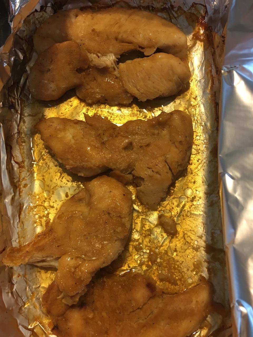 烤鸡胸肉,加点蒜蓉、酱油、黄油,好吃😋