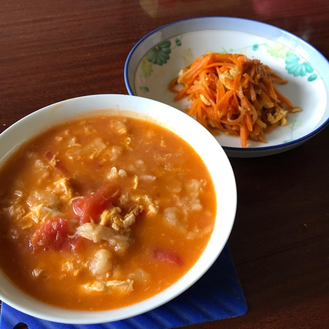 疙瘩汤+胡萝卜炒鸡蛋