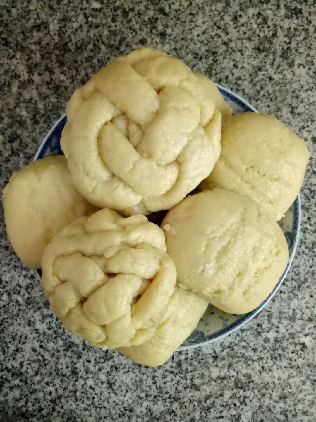 今天第一次做面点😜玉米馒头出锅了😃觉得面没发好😱下次继续努力😊小的绣花馒头是小孩做的😂下次加些糖估计好吃点