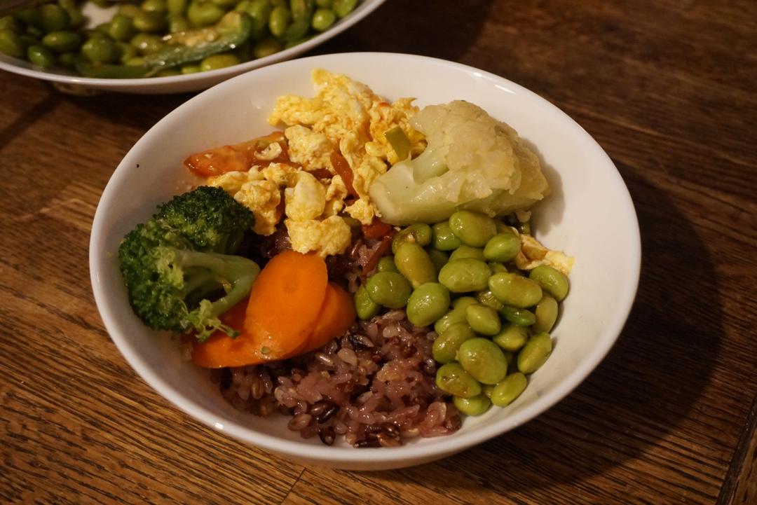Crazy_Rabbit 做过 晚餐•2017年7月19日 菠菜蘑菇肉丸汤墨西哥辣椒炒豆豆青西红柿炒蛋胡萝卜菜花炒西兰花杂粮饭蓝莓一顿热乎乎的中餐真是莫大的安慰…… #晚餐•2017年7月19日# 2017-07-20
