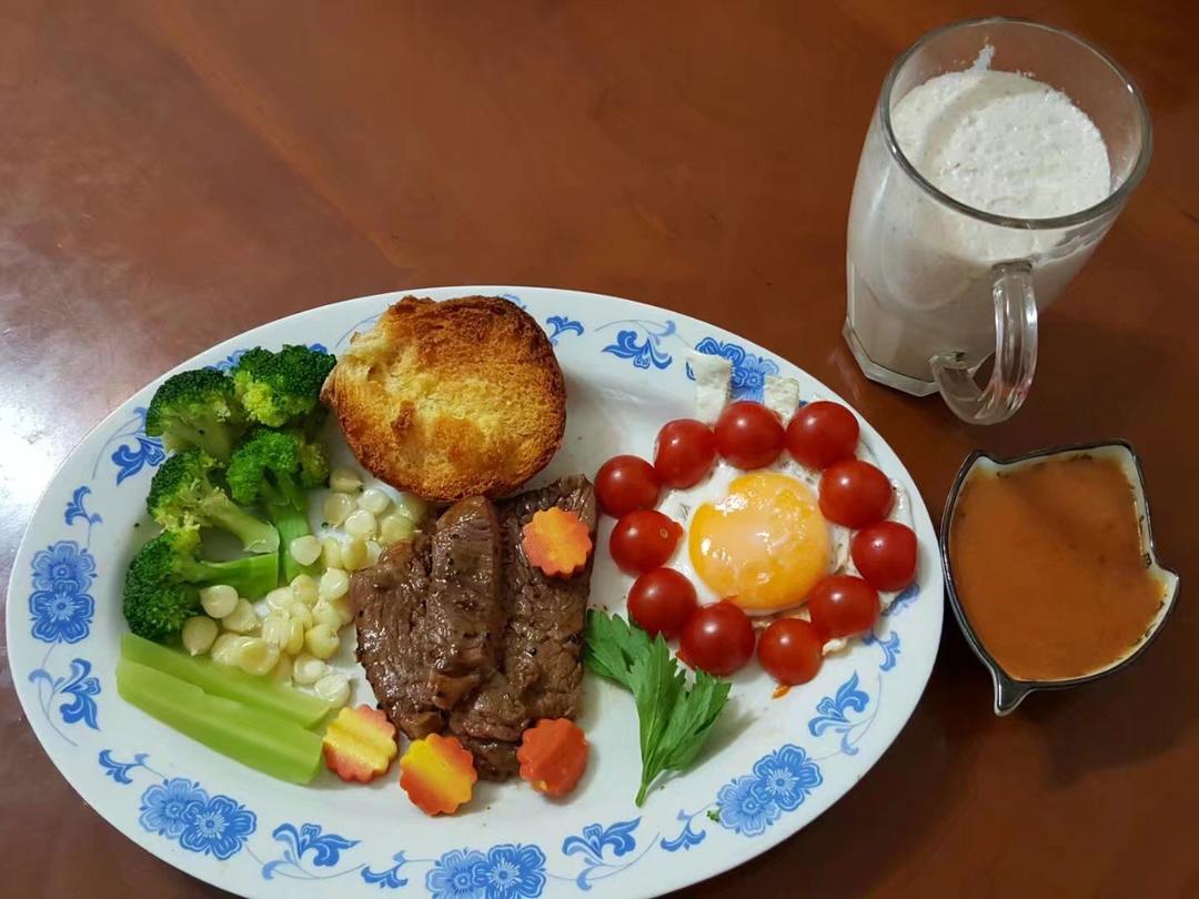 煦风沧海 做过 顶级牛排 为今天的早餐昨天晚上恶补各位大神的牛排制作过程,最后因地制宜,各种自我发挥😊,成品如图,味道不错,女儿说番茄洋葱酱好吃(煎牛排的余油+洋葱番茄炒制,就这么简单)😄 2017-07-22