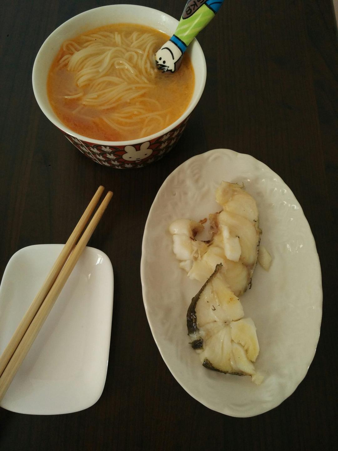 煎鳕鱼,西红柿汤面