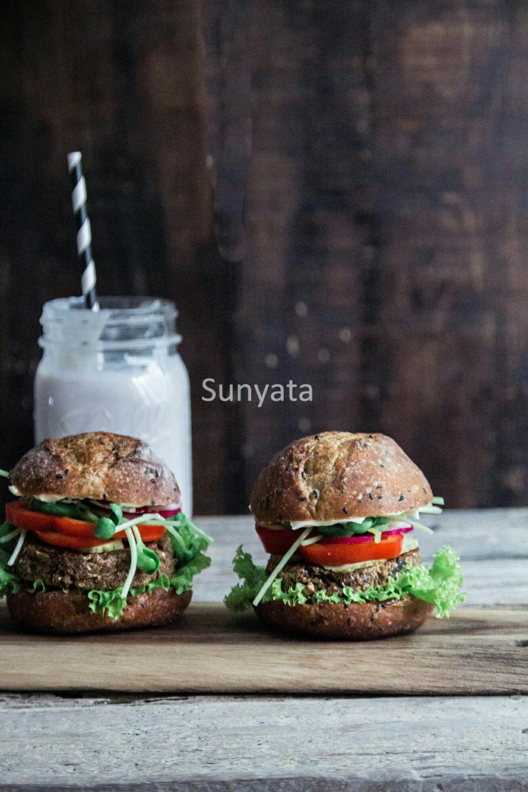 【素食绫也】纯素汉堡(内含“蛋黄”酱、“肉”饼的制作方法)
