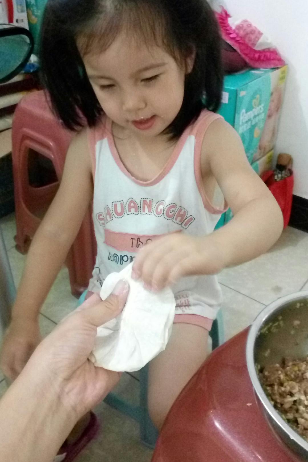 帮妈妈包烧麦,自己却偏要吃酸奶泡🐶粮,哈哈😘😘