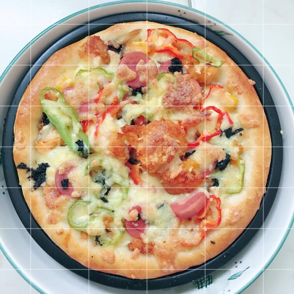 奥尔良烤鸡排披萨,大块的鸡排很诱人呢