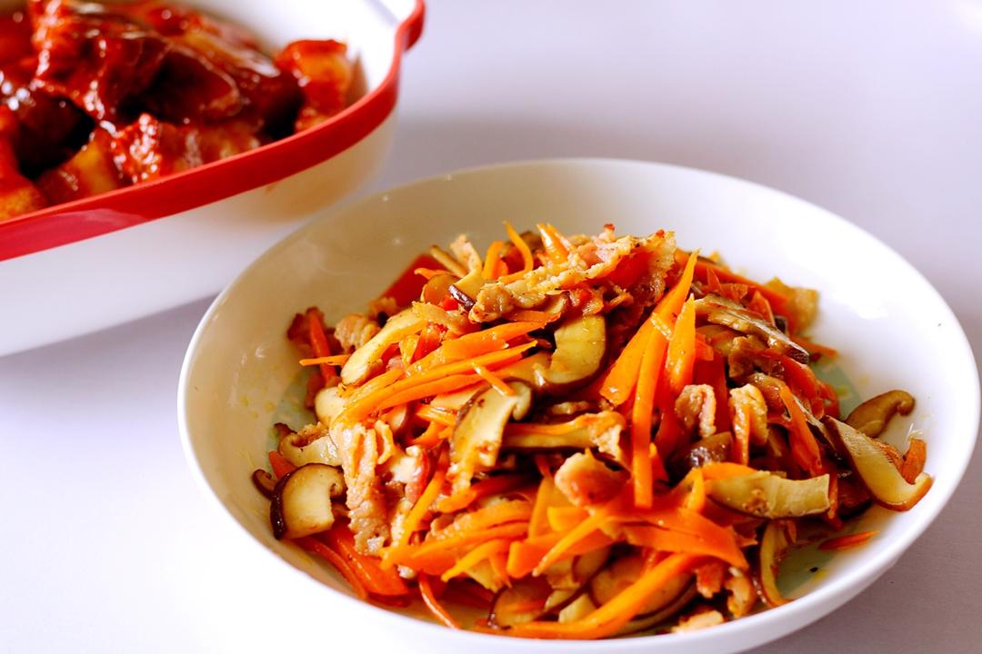 胡萝卜香菇炒培根☺️