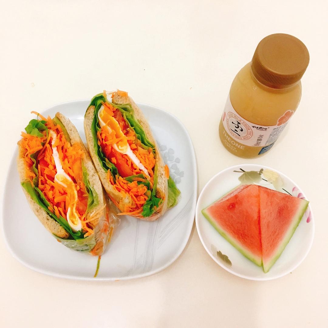 May-wym 做过 如何做超厚的沼三明治~详细tip!牛油果鸡蛋午餐肉三明治~ #不修边幅三明治#第一次实践,自我感觉卖相不错~没加任何酱,胡萝卜有点多,满满胡萝卜味道,不过还是很森系,哈哈。 #早餐•2017年8月2日# 2017-08-02
