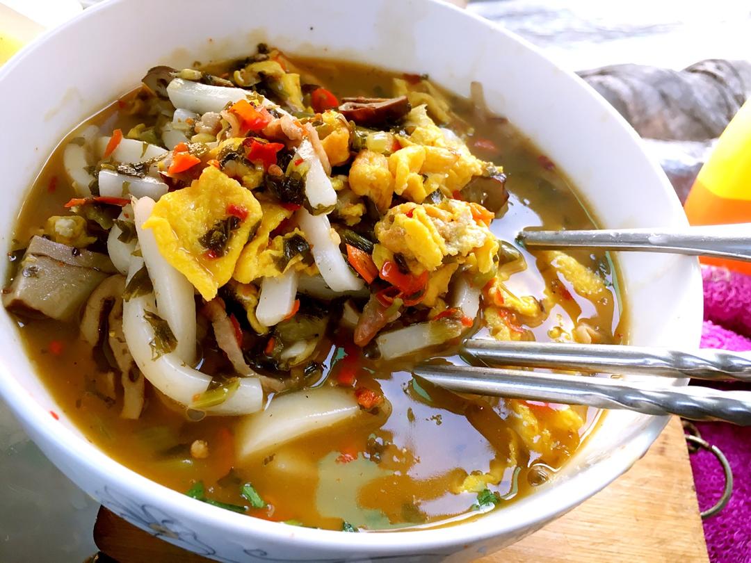加辣版的雪菜鸡蛋汤年糕