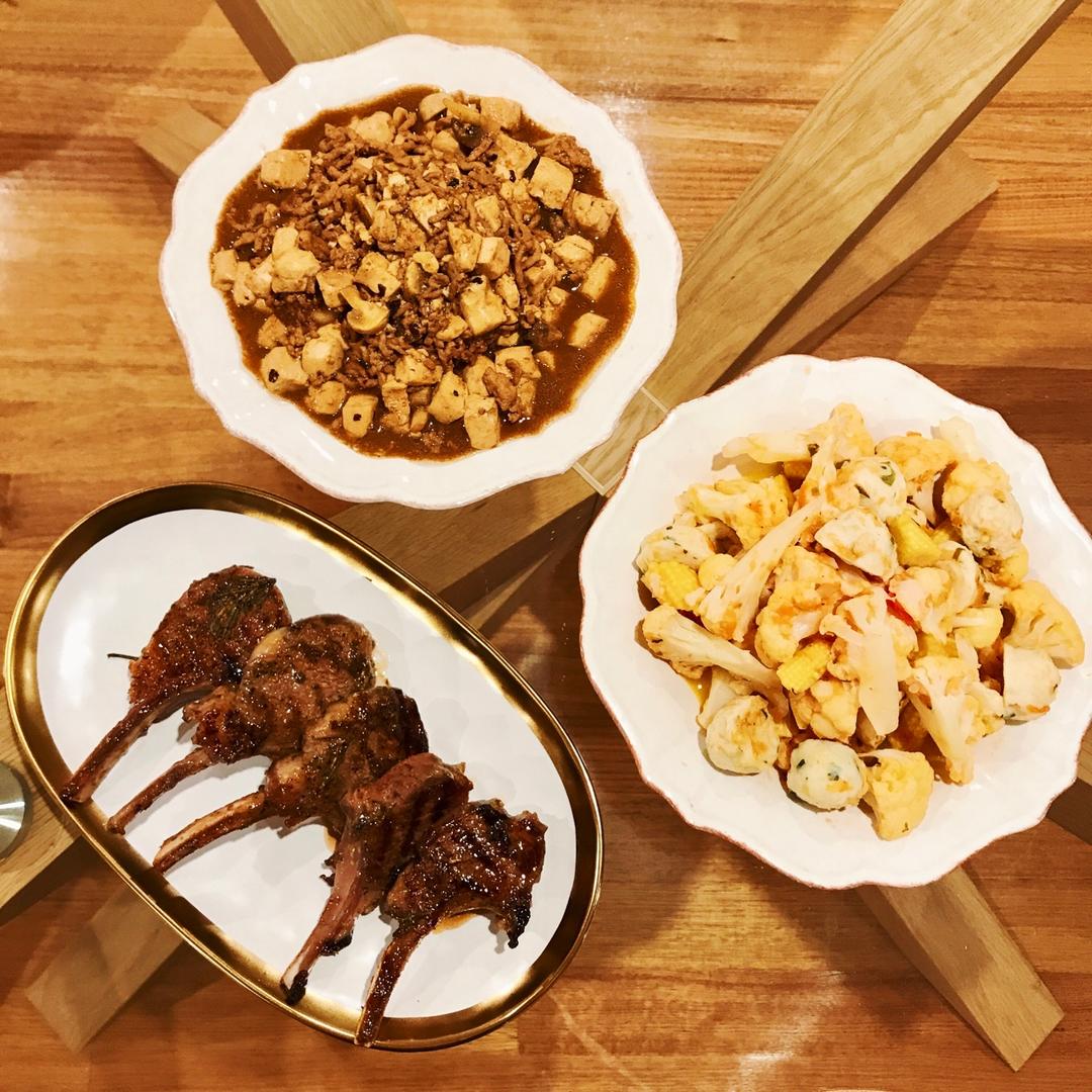 家常豆腐+茄汁菜花+蜜汁羊排