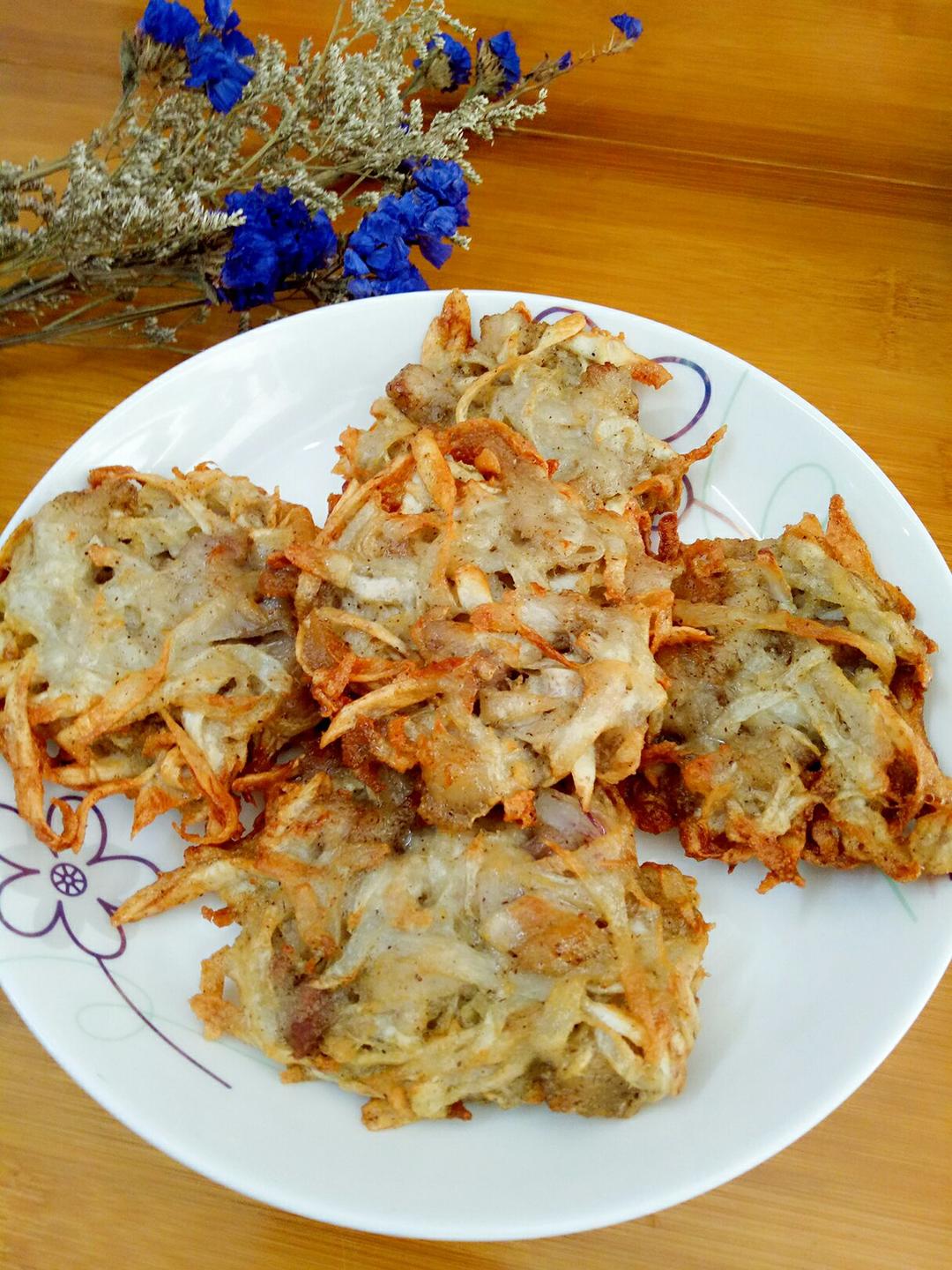 炸猪肉芋丝萝卜丝饼😊