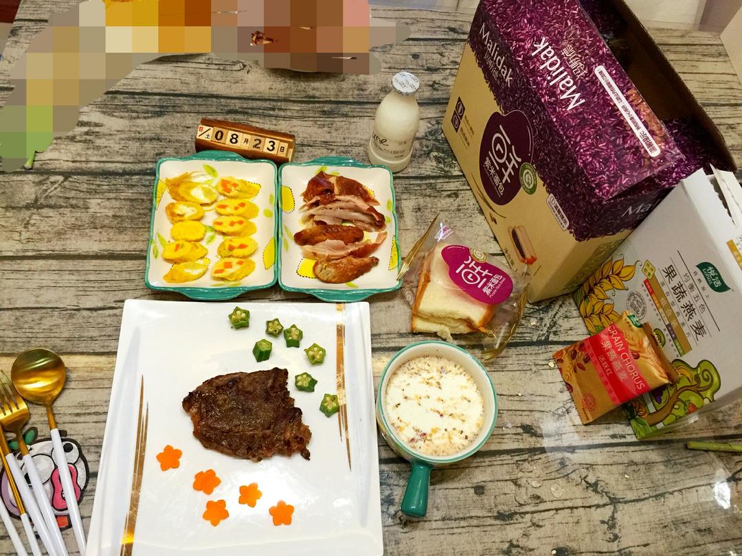 基本都是成品,很快捷,自己动手用蛋卷机做的胡萝卜蛋卷和牛排