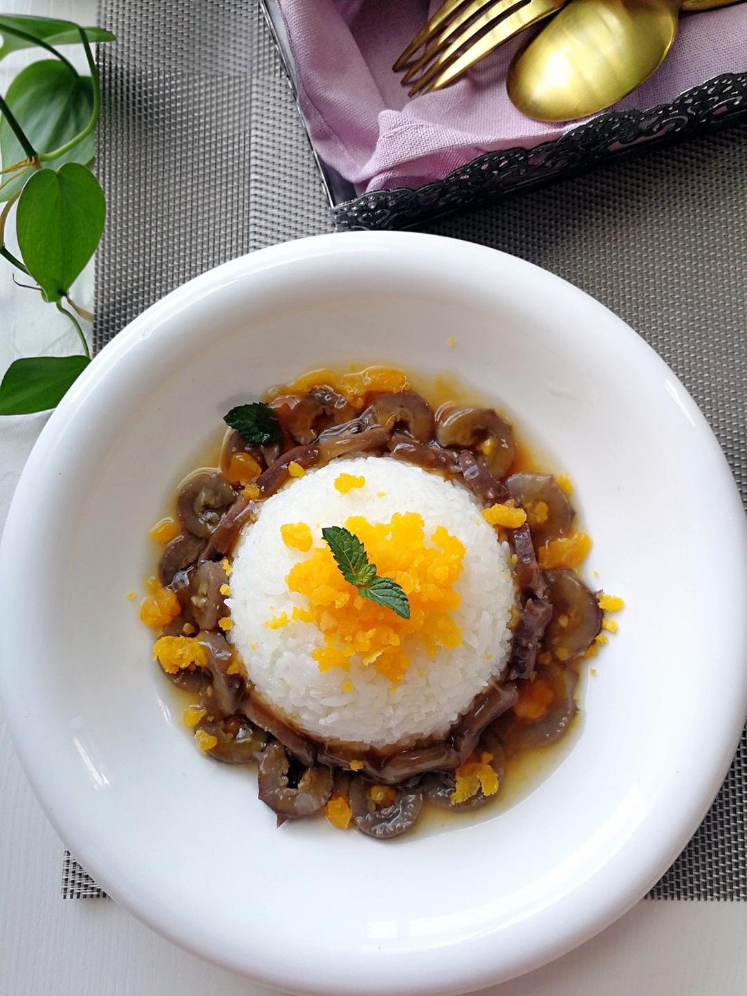 海参捞饭,加了咸蛋黄,秒杀