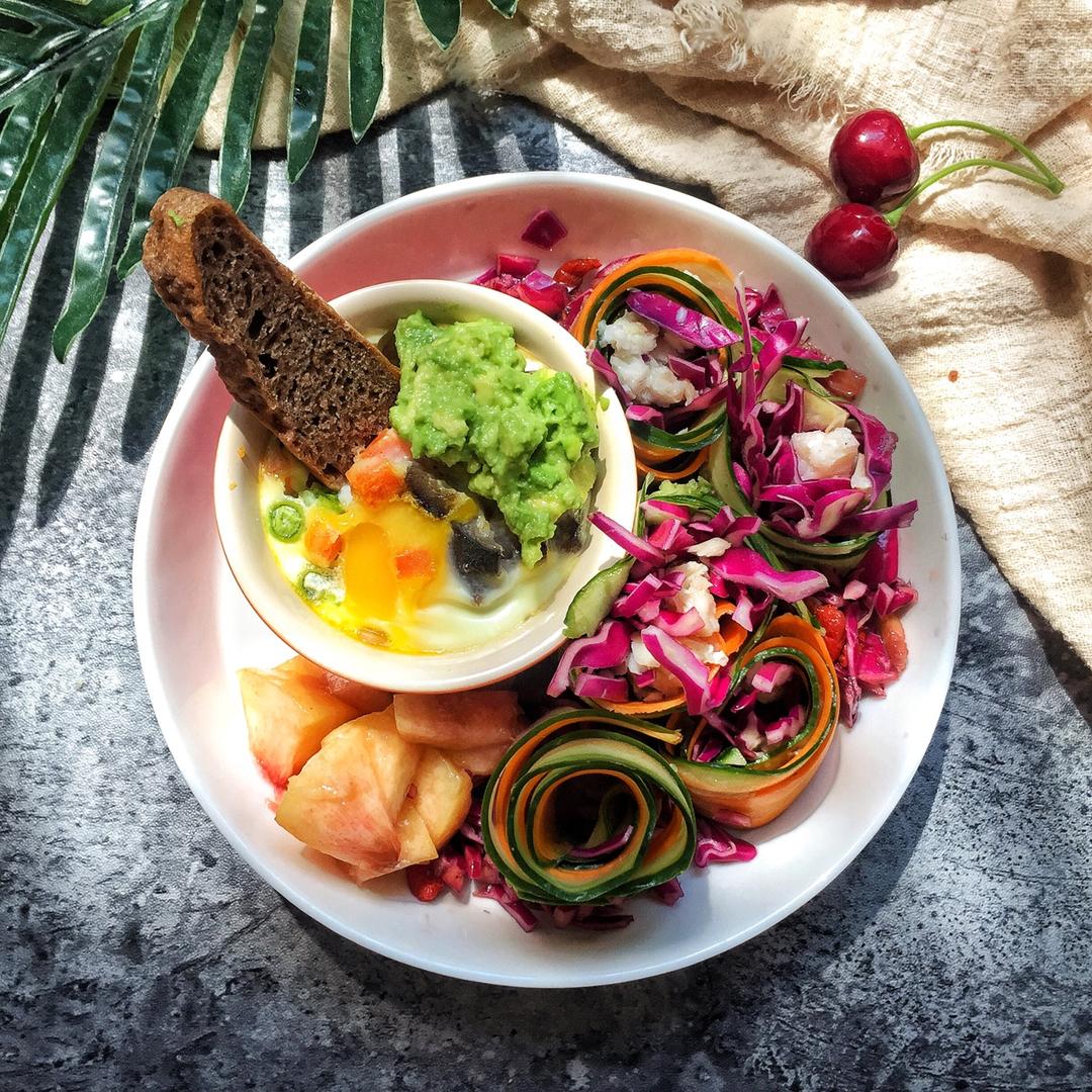 Emmazhy 做过 溏心蛋杯(烤箱版&超快手) 蛋白质:溏心蛋杯纤维素:黄瓜紫甘蓝玫瑰沙拉碳水:黑麦面包、薏米脂肪:牛油果昨天连着六小时做蛋糕,做完又去举了一小时铁...吃一碗这个简直幸福哭了😍今天接着举铁,加油🤣 #午餐•2017年8月26日##蓝带小学混##吃货健身狗的苦逼人生# 2017-08-26