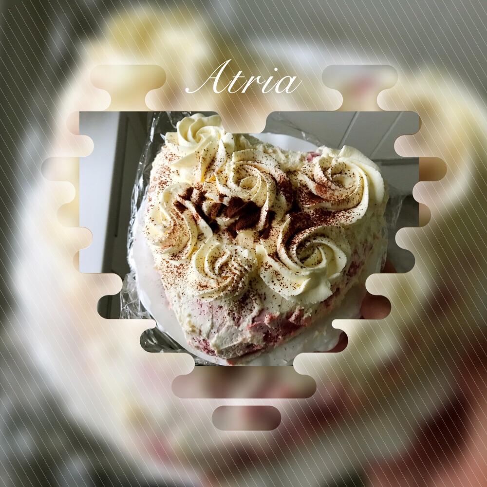 做得比较崩溃。首先蛋糕糊超级干,我加了两次牛奶才勉强能用。然后,烤完偏爱,只有两片,上面一片偏厚而已。不知是否正常。第三,马斯卡彭直接被打得油水分离,成了豆腐渣状了。不想浪费,硬着头皮放在夹层了。没办法,又打了些奶油抹面,装饰。最后,放冰箱冷藏等半天后,炒鸡硬。今早,先把蛋糕取出室温回温,口感好多了。 #早餐•2017年8月29日##甜蜜二人食#