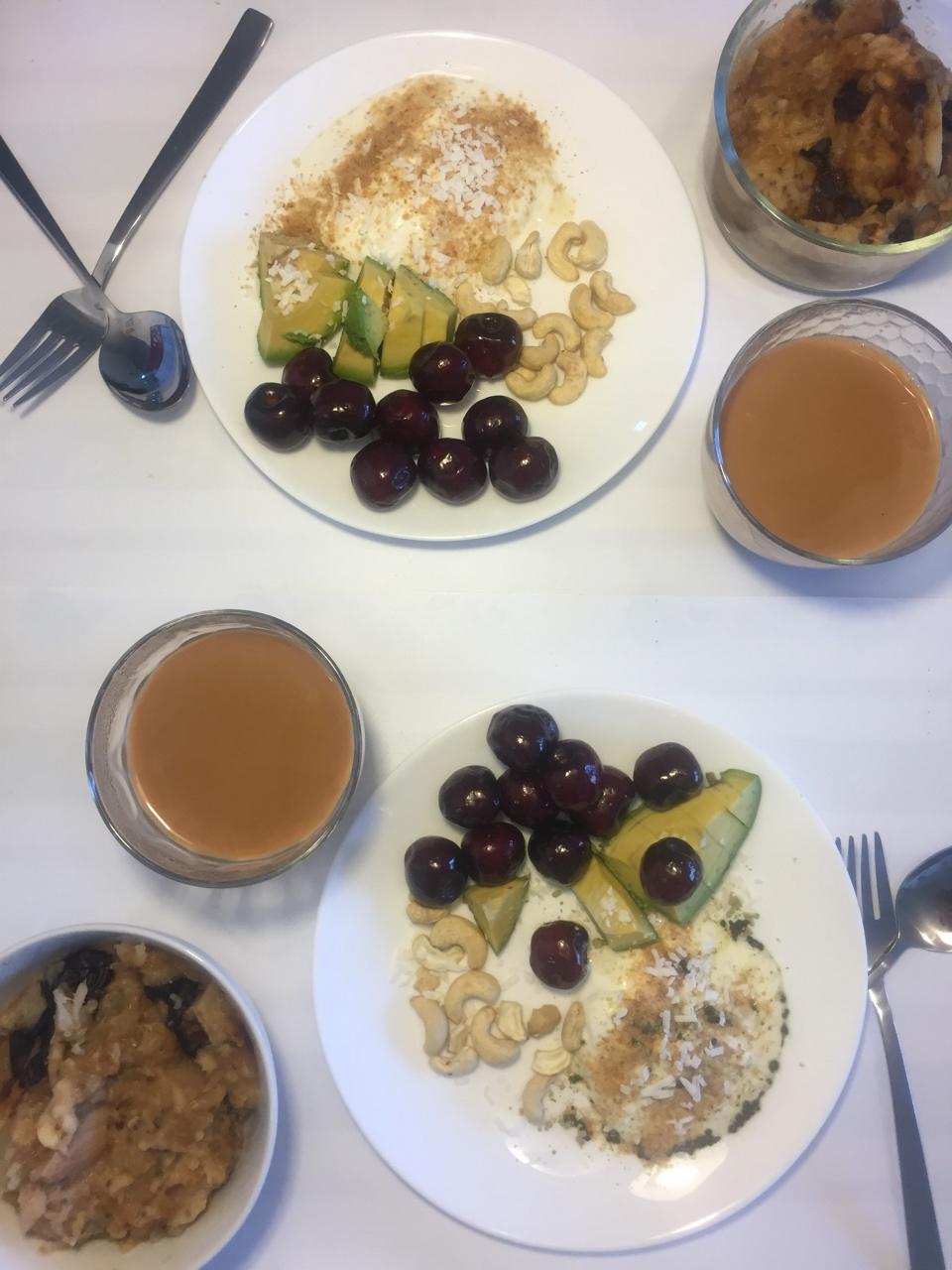 Amber_b84t 做过 早餐•2017年8月30日 - 过几天开学啦,估计就没有时间好好摆弄早餐啦,珍惜还能摆弄的日子😂😂- 碳水:银耳山药燕麦粥- 蛋白:酸奶牛奶- 蔬果:樱桃牛油果- 脂肪:腰果 #早餐•2017年8月30日##FoodJournal# 2017-08-31