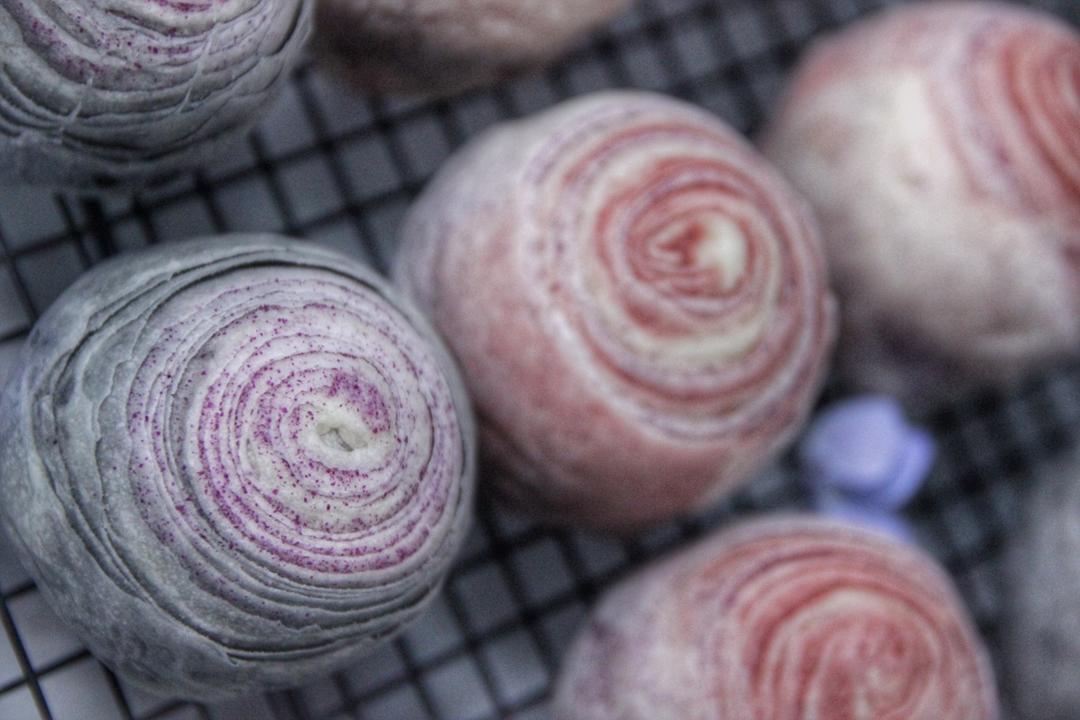 蛋黄酥~紫薯、抹茶、原味~花好月圆,中秋快乐~内附一次做六色蛋黄酥方法~