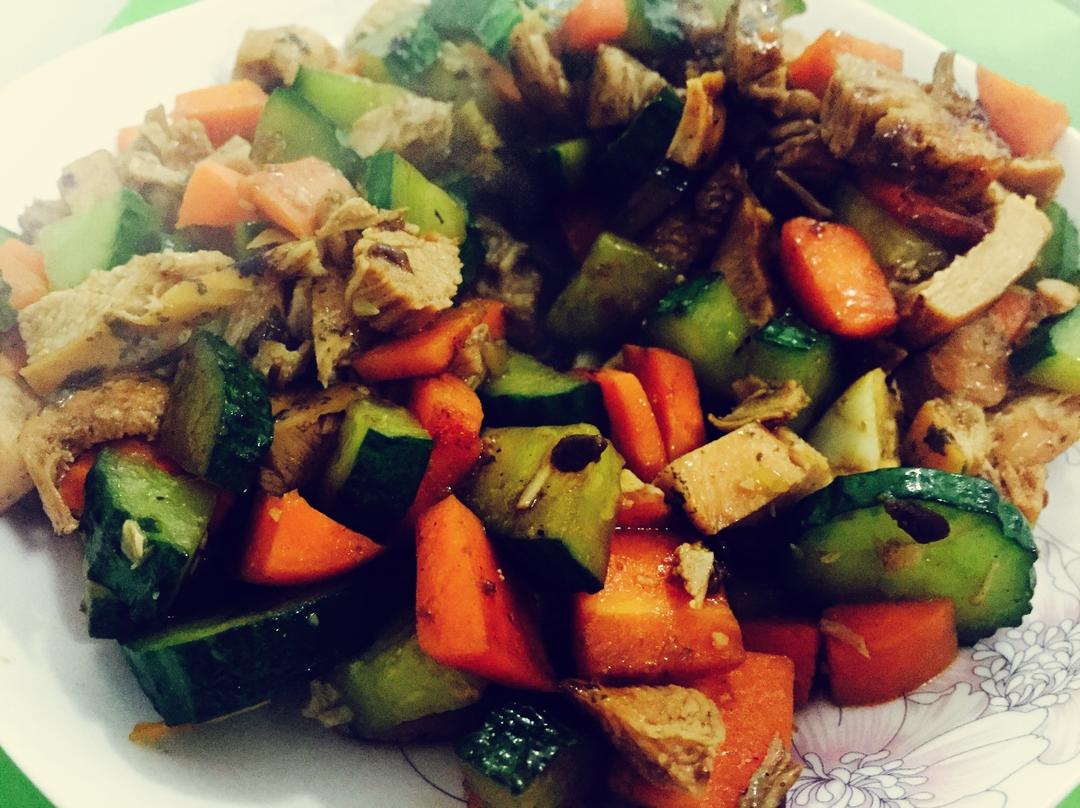 屠先森把我做沙拉的烟熏鸡胸肉做成宫保鸡丁了😂