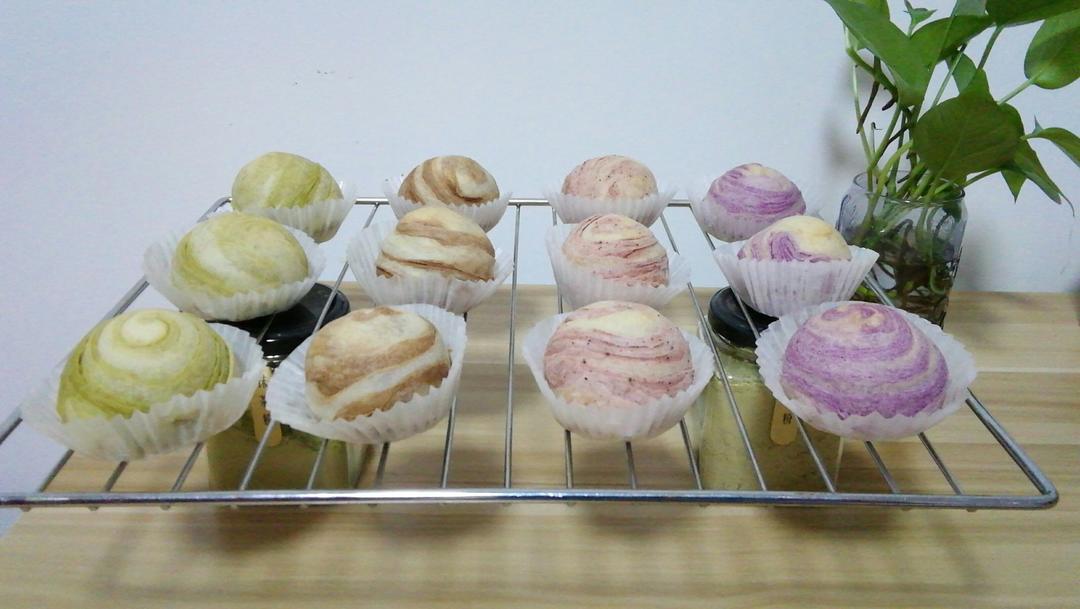 蛋黄酥~紫薯、抹茶、原味~花好月圆,中秋快乐~内附一次做六色蛋黄酥方法~
