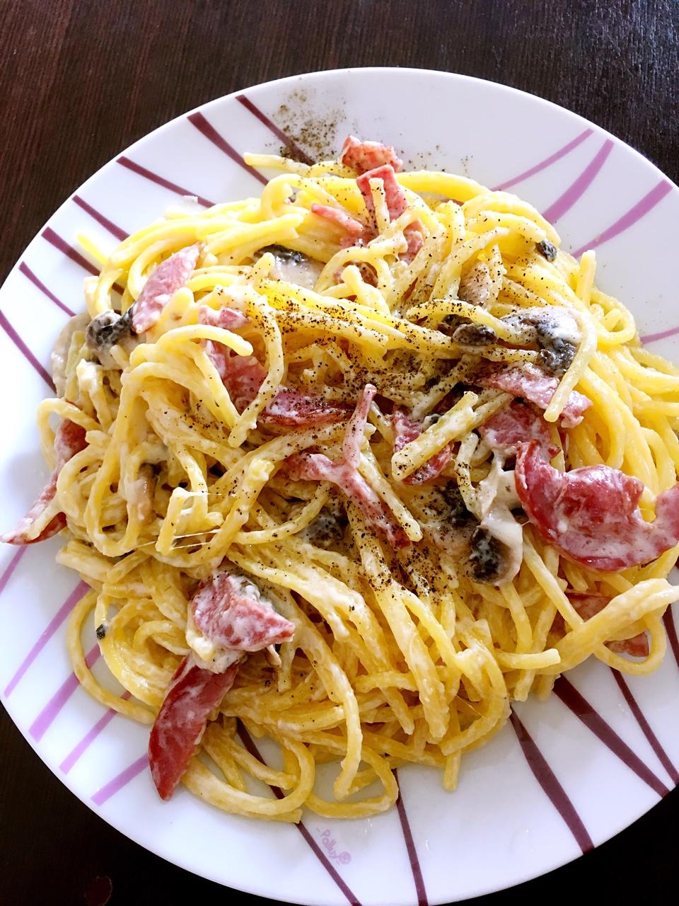 白蘑菇奶油培根意面