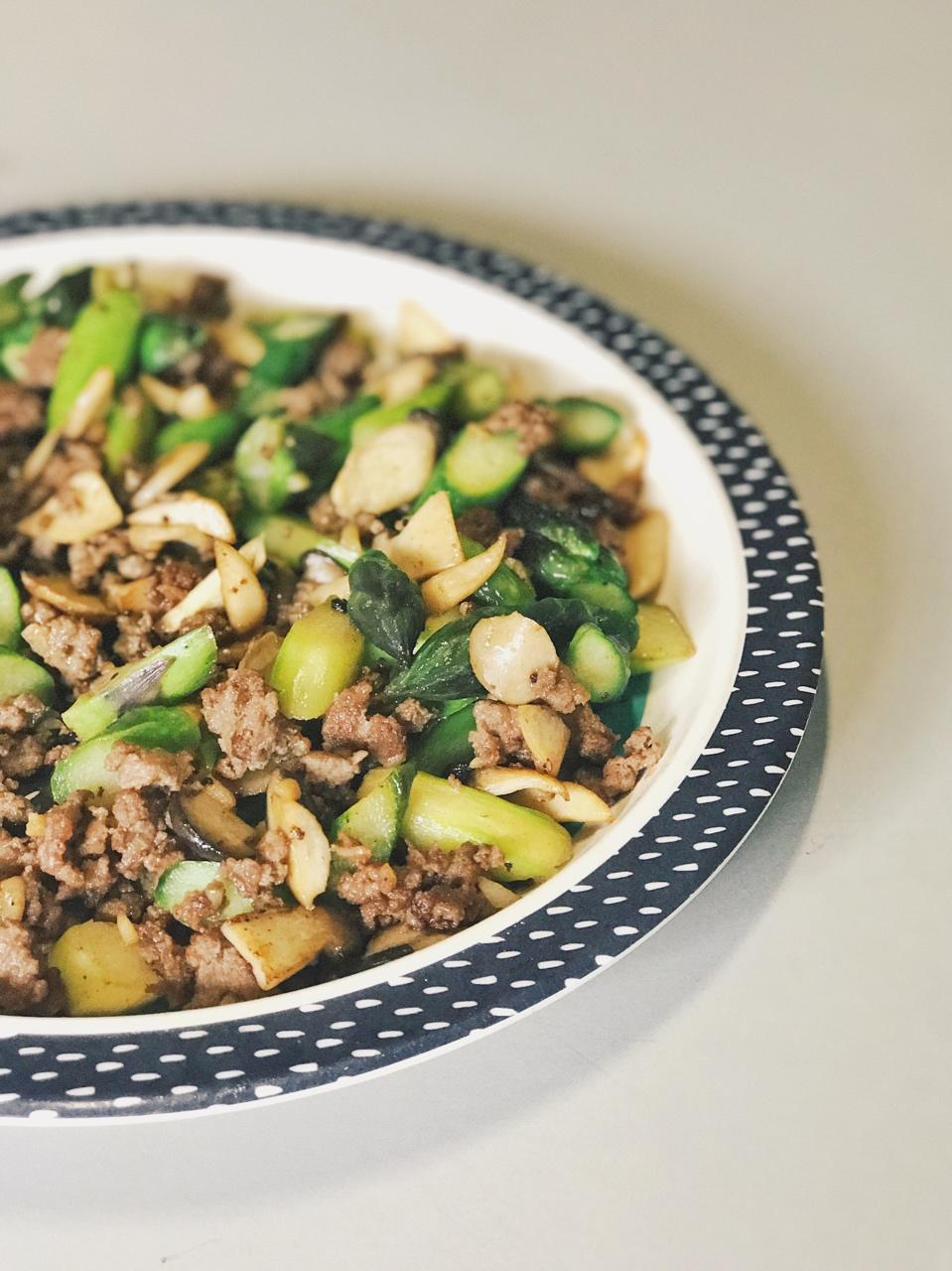 芦笋杏鲍菇炒牛肉,这三种食材搭在一起的口感太美妙喇~